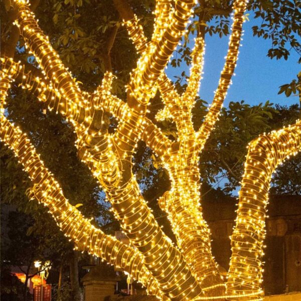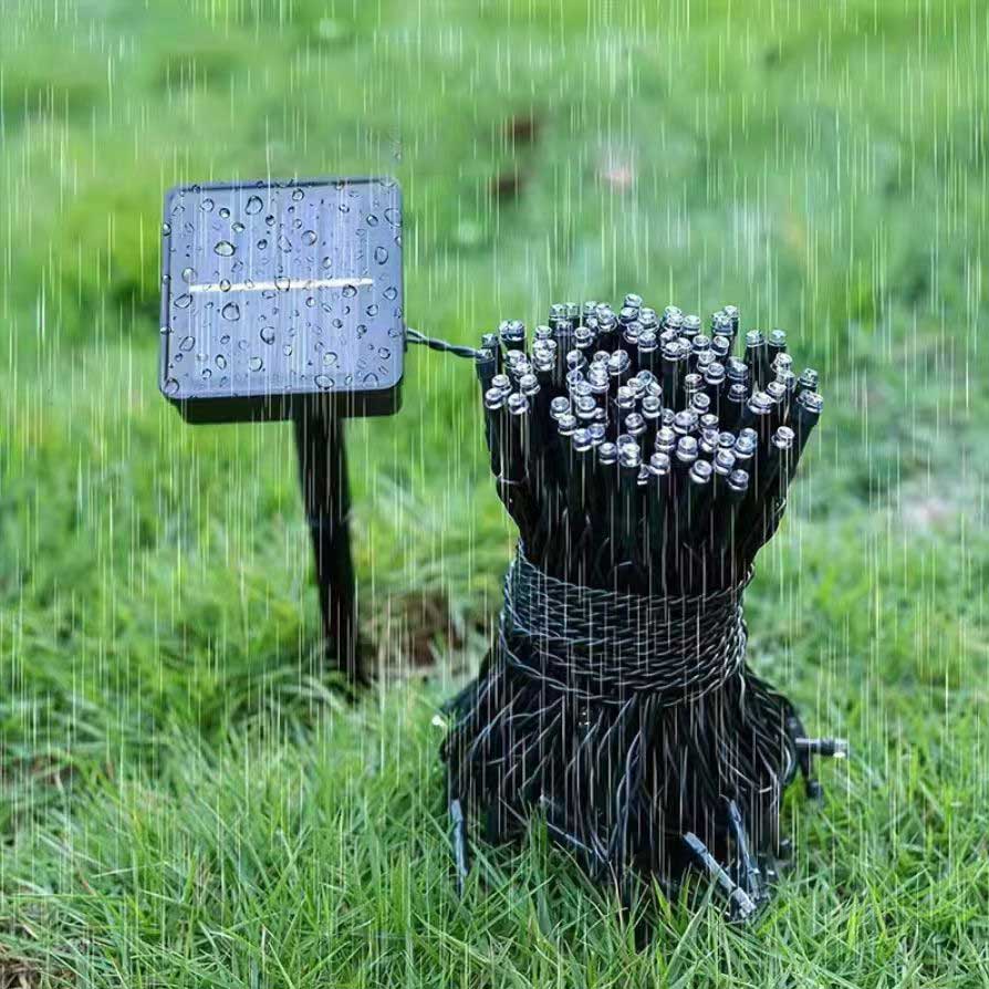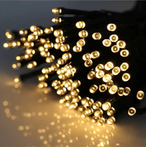 At a generous meters ( feet) in total length, these warm white solar string lights provide ample coverage to wrap around large tree trunks, drape along pergolas, or line your deck railing. The lights are tightly spaced at intervals for a brilliant, dense glow, while the dark green lead wire makes it easy to position the solar panel discreetly.