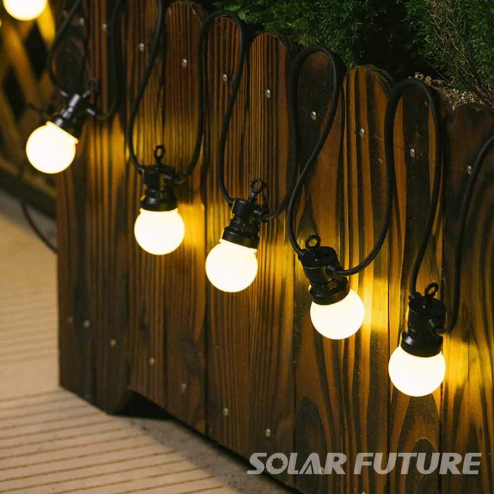 Durable Big Bubble Ball LED String Lights in 5M, 10M, and 20M lengths. Choose between eco-friendly Solar Power or high-reliability 220V Plug-in. Perfect G40-style lighting for indoor/outdoor events and garden decor.